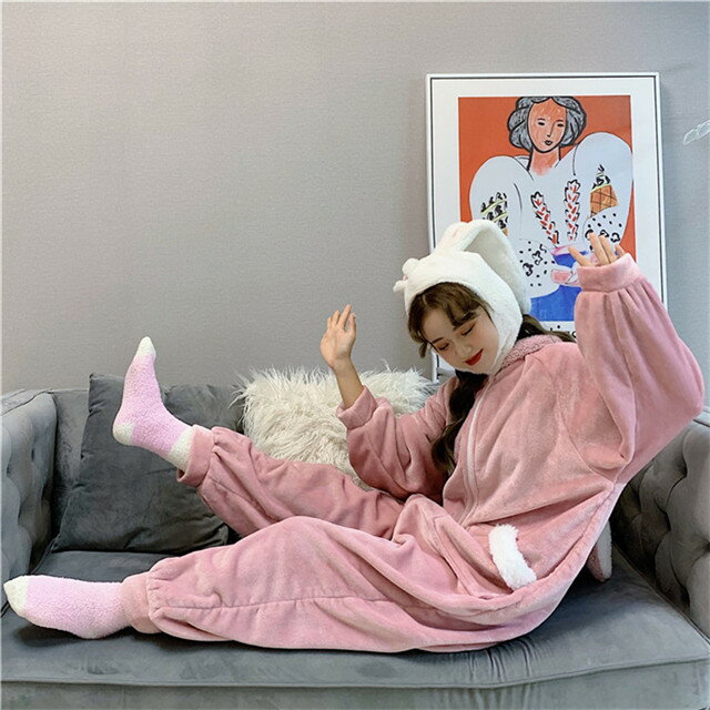パジャマ女性 兎柄 レディース 着る毛布 かわいい ルームウェア もこもこ上下セット 厚手 女の子可愛い耳付き ガウン 前開き 柔らか ふわふわ 裏起毛 冬部屋着 無地 シンプル 防寒 カジュアル 学生 ママ 大人10 20 30 40代 婦人用 プレゼントリラックスsy159d